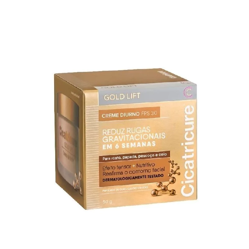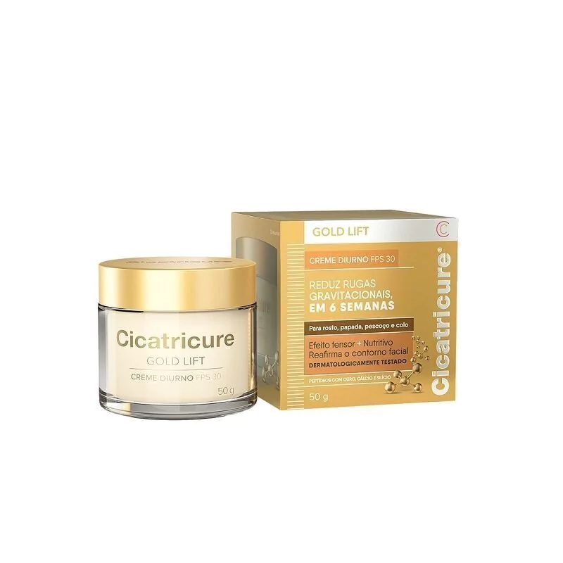 Anti-idade diurno para todos os tipos de pele. Cicatricure Gold Lift Diurno oferece efeito tensor, nutritivo e redefine o contorno facial.