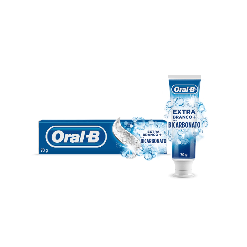 Oral-B Extra Branco Bicarbonato ajuda a branquear os dentes e oferece uma sensação de frescura. Nossa fórmula perfeita com um ingrediente poderoso para quem busca um branco radiante. Tem flúor para cuidar e proteger o esmalte dos dentes e prevenir problemas como cáries e outras doenças bucais. Recomendamos escovar os dentes pelo menos três vezes ao dia e complementar sua rotina com os produtos Oral-B.