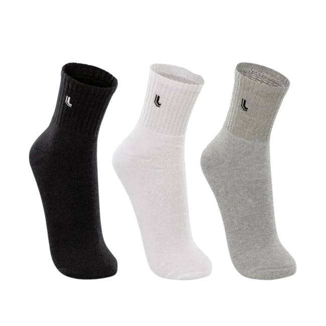 Kit com 3 pares de meia esportiva com calcanhar verdadeiro que proporciona ajuste perfeito e maior conforto.
