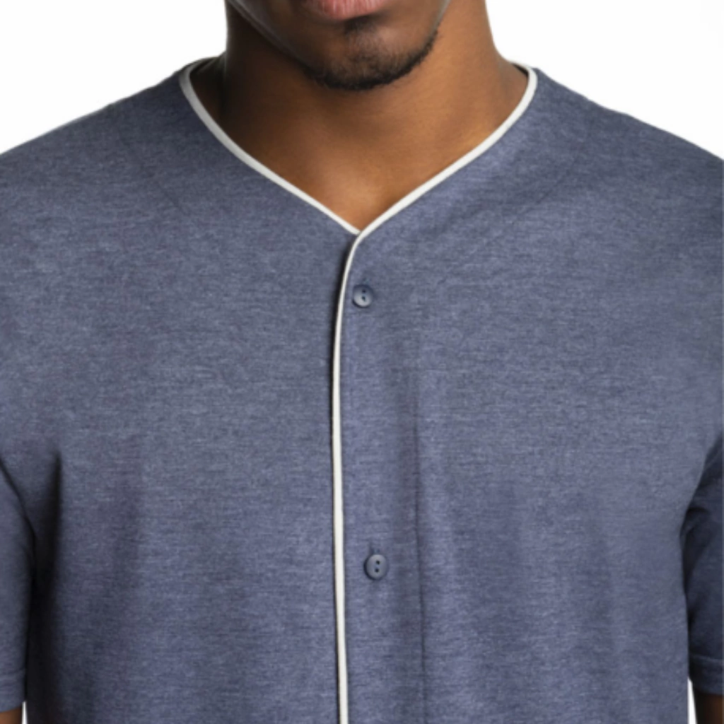 A camiseta de modelagem manga curta possui uma abertura frontal com fecho abotoável, que facilita o vestir e dá um charme extra ao visual. Os detalhes em vivo trazem um toque sofisticado, enquanto o cós do short com elástico embutido garante um ajuste perfeito e confortável.