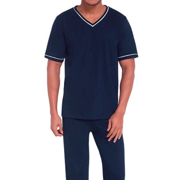 Pijama masculino confeccionado em malha de algodão macia, leve e confortável.