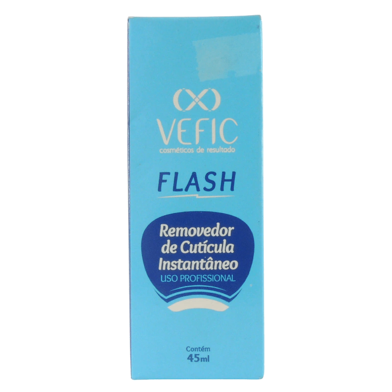 Removedor de Cutícula Instantâneo Flash Vefic criado especialmente para a delicada e complexa estrutura da cutícula, contém em sua fórmula dois grandes ativos, Aloe Vera e Alantoína, que aumentam a retenção de umidade na pele, contribuindo para a cicatrização e diminuição da irritação, restaurando e protegendo o tecido cutêneo.